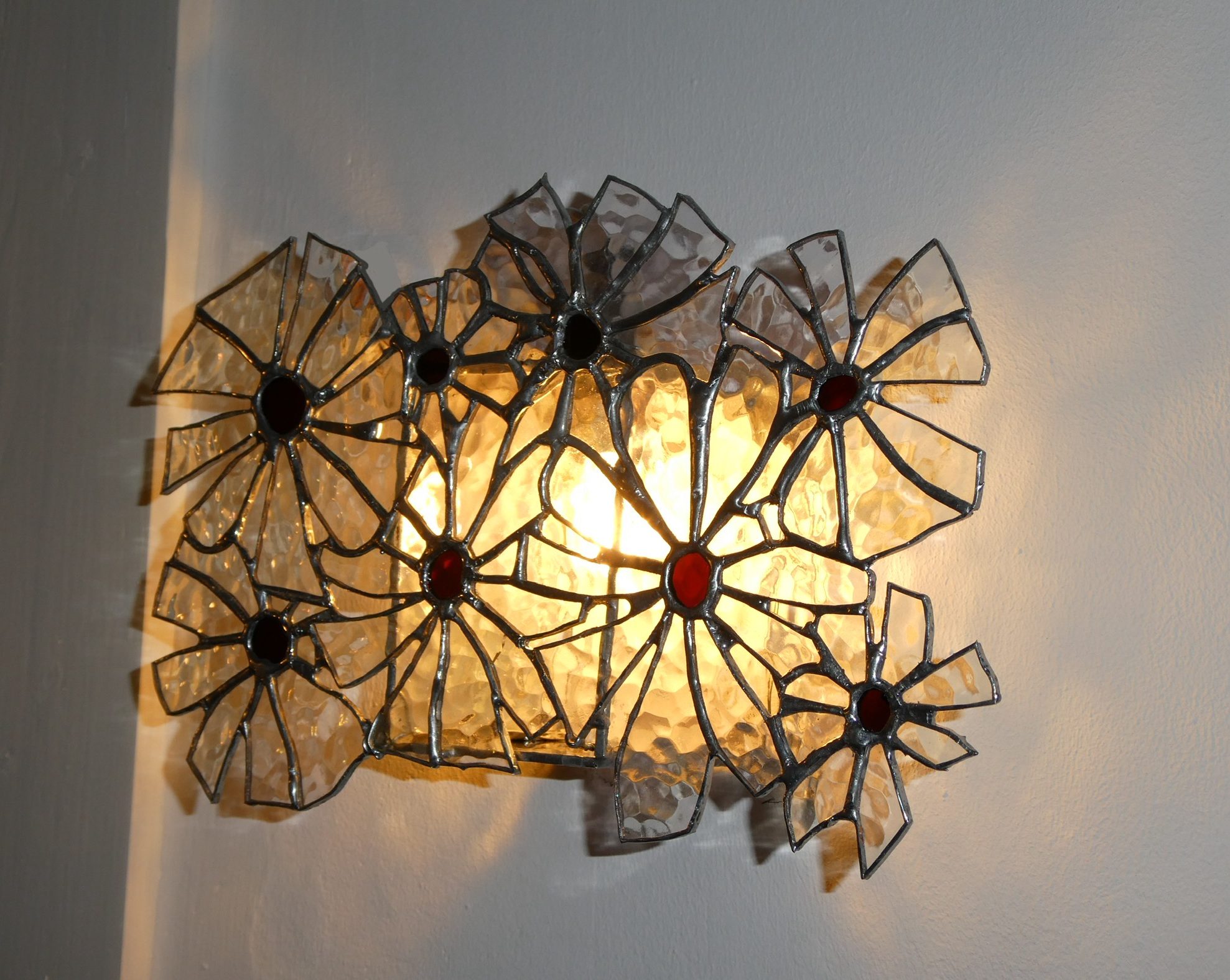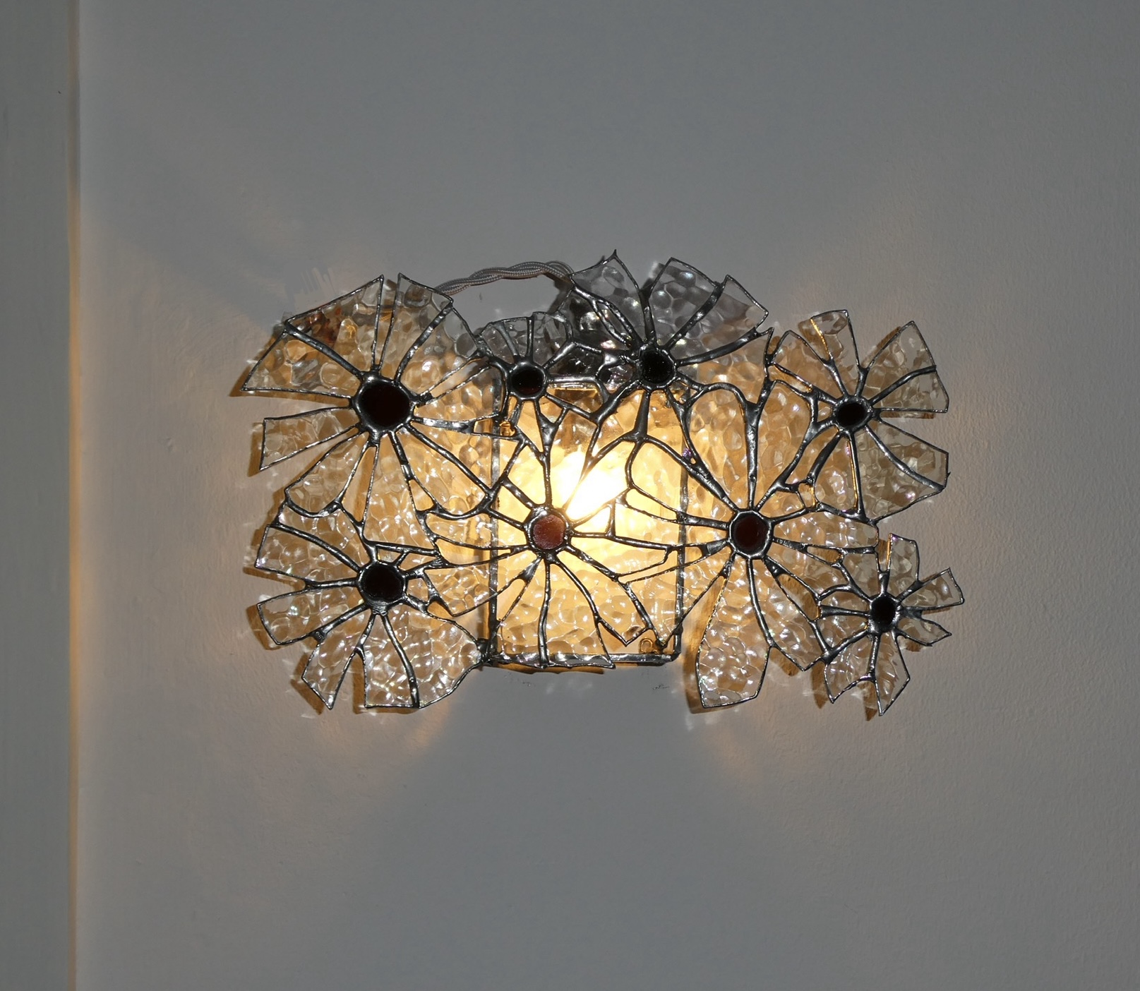 Pâquerette - Applique murale en verre irisé transparent et violet